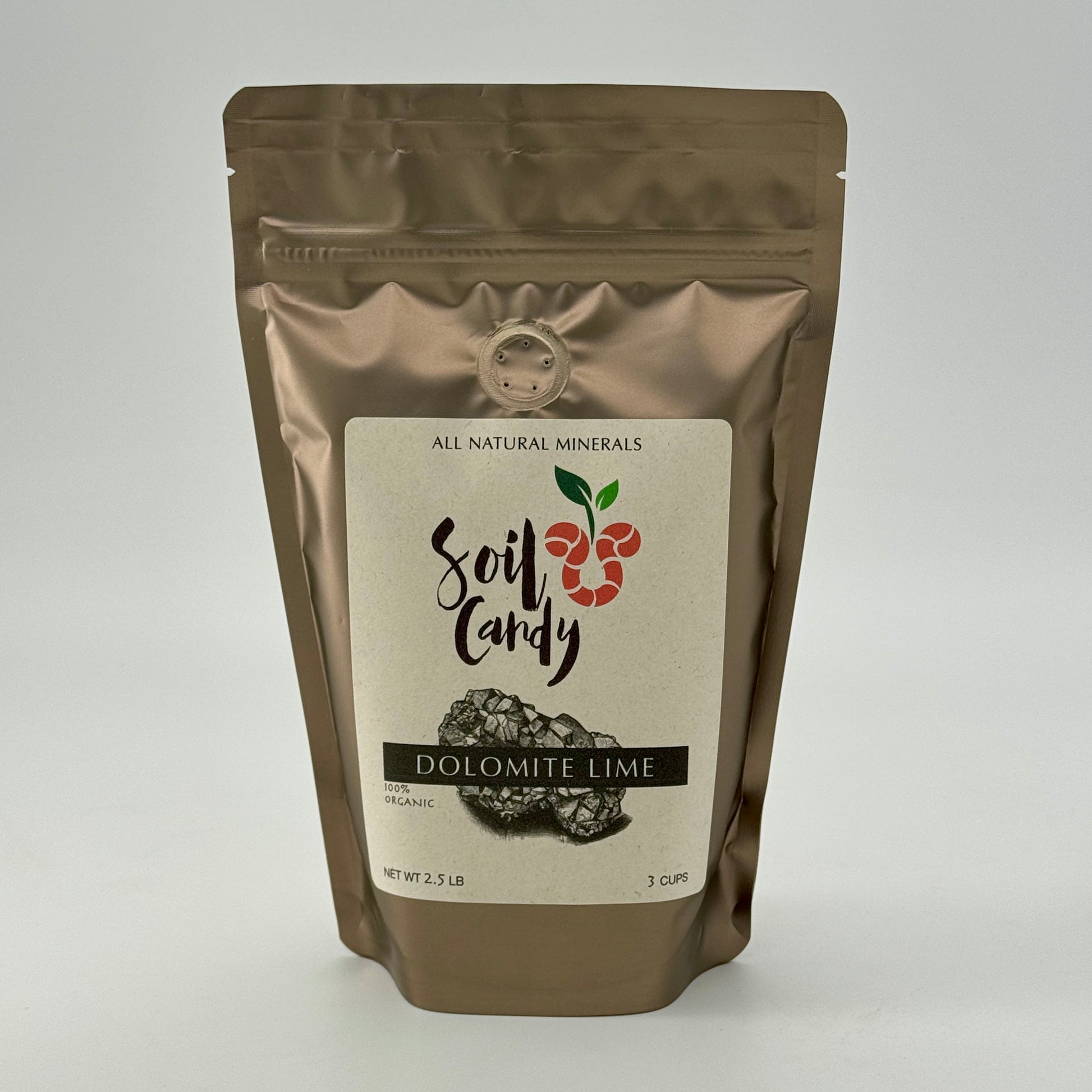Soil Candy's DOLOMITE LIME (Cal-Mag) is derived from dolomitic limestone, a mineral composed primarily of calcium magnesium carbonate. It’s composition is 21.8% calcium and 11.6% magnesium. It is water soluble and can be used in solution grade applications and also combined with other natural fertilizers to formulate custom blends.